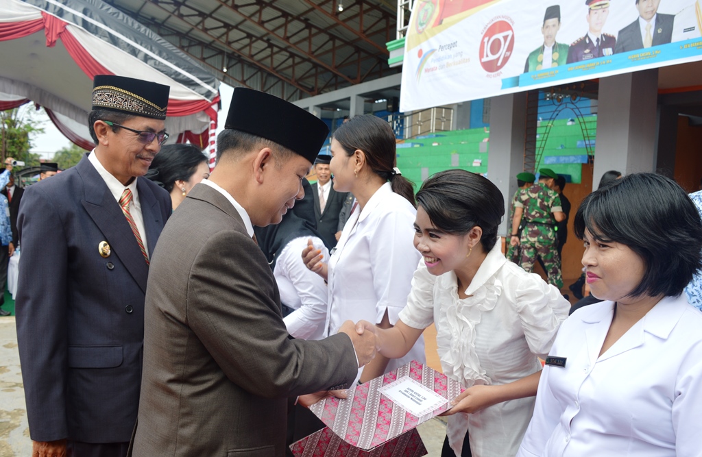 Rangkaian upacara disertai dengan Penyerahan secara simbolis Surat Keputusan Bupati Kapuas untuk Guru Kontrak Daerah Kabupaten Kapuas Tahap I yang diberikan langsung oleh Bupati Kapuas Ben Brahim S Bahat.