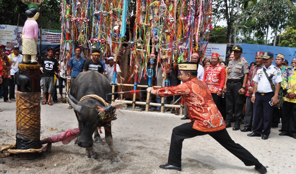 Bupati Kapuas Tombak Kerbau Di Ritual Tiwah