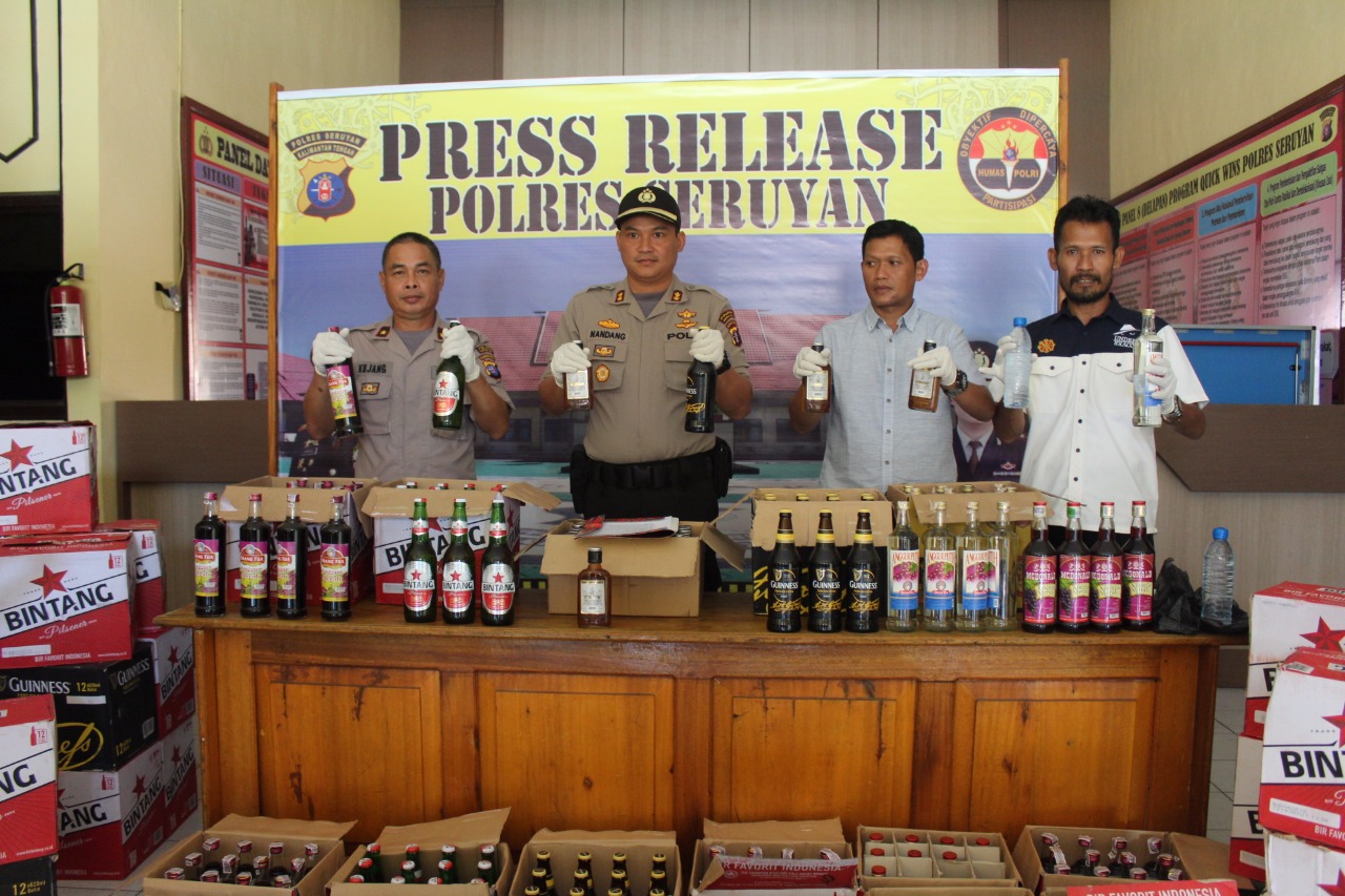 Polres Seruyan berhasil mengamankan 360 botol Bir Bintang, 60 botol Bir Hitam, 164 botol Anggur Merah, 48 botol Whisky dan 12 botol Anggur Putih, 24 botol Mension.
