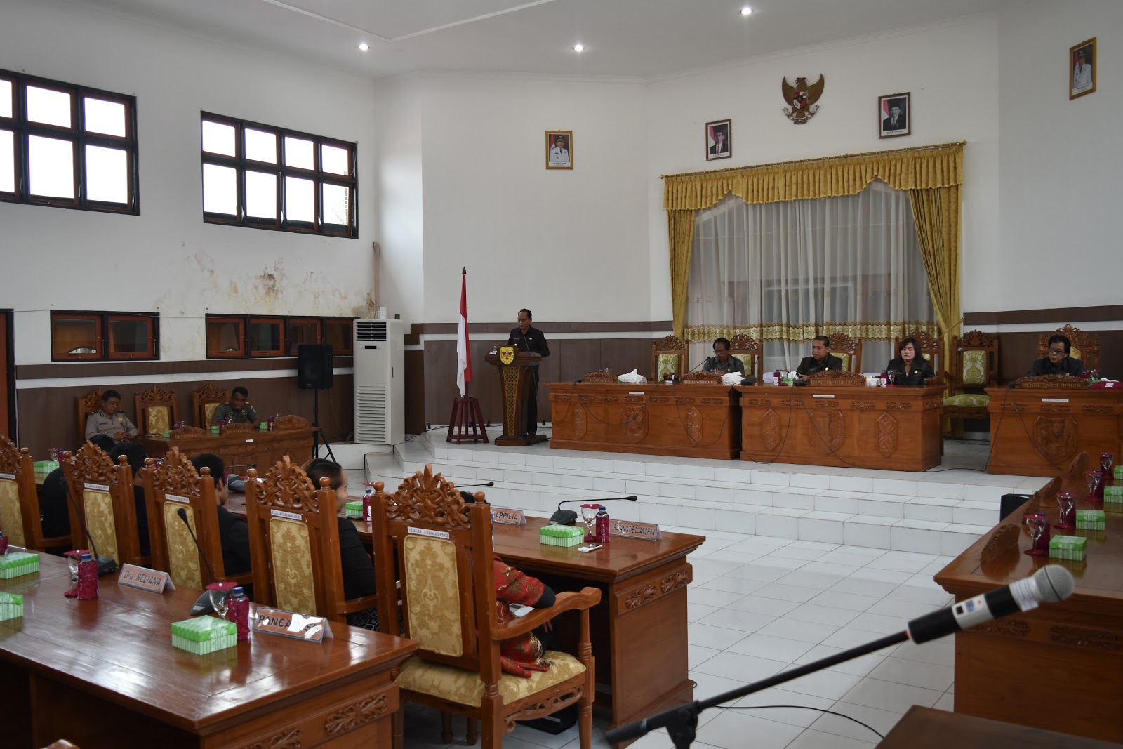 Bupati Gunung Mas Arton S Dohong menyampaikan tanggapan Fraks-Fraksi Gunung Mas,GK – Rapat Paripurna Dewan Perwakilan Rakyat (DPRD) Kabupaten Gunung