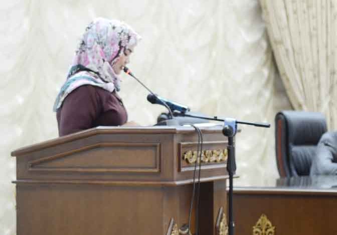 Juru Bicara Fraksi PPP Wardhatun Nur Jamilah ketika menyampaikan pendapat di rapat paripurna.