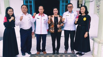 FOTO : Anggota DPRD Gunung Mas, Rayaniatie Djangkan ketika foto bersama Ketua PMI Gunung Mas, Anthony L. Djaga dan jajarannya di aula Kantor Kecamatan Kurun, Rabu (13/3/2019).