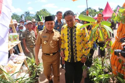 PULANG PISAU – Gubernur Kalimantan Tengah (Kalteng) H Sugianto Sabran mengunjungi stand peserta perwakilan dari Pemerintah Kabupaten (Pemkab) Pulang Pisau (Pulpis) dalam acara Pekan Daerah (PEDA) Kontak Tani Nelayan Andalan (KTNA) Ke – XII Tingkat Provinsi Kalteng di Desa Eka Bahurui, Kecamatan Mentawa Baru, Kabupaten kotawaringin timur, Senin (8/7/2019).