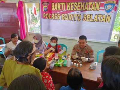faktakalimantan.co.id – BUNTOK – Jajaran Kepolisian Resort (Polres) Barito Selatan melalui Satuan Pembinaan Masyarakat (Binmas), melaksanakan pelayanan kesehatan gratis kepada masyarakat di Desa Mabuan, Kecamatan Dusun Selatan, Barsel, Rabu (16/10/2019).