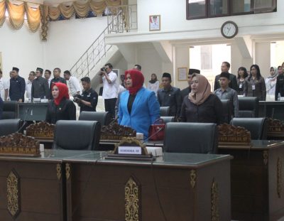 PARIPURNA : Anggota DPRD Batara, Jamilah (kiri), Wardatun Nurjamilah (tengah), Rosi Wahyuni (kanan) saat mengikuti Rapat Paripurna Penyampaian Pendapat Akhir Fraksi-Fraksi terhadap Raperda APBD tahun Anggaran 2020.
