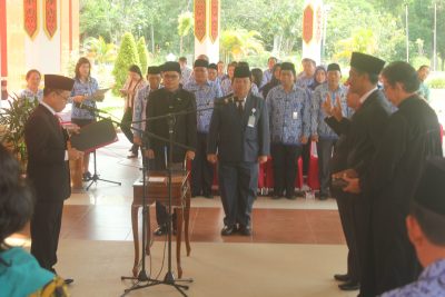 Faktakalimantan.co.id. Kasongan – Bupati Katingan Sakariyas melantik dua pejabat eselon II di halaman Kantor Bupati, Jumat (17/1/2020).