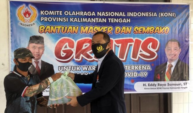 Bantuan tersebut merupakan hasil sumbangan pribadi sejumlah pengurus KONI Kalteng. Uang yang terkumpul kemudian dibelanjakan membeli Sembako sebanyak 150 paket terdiri dari 5 kg beras, 1 kg gula dan 1 liter minyak goreng. Lalu membeli masker scuba KONI Kalteng sebanyak 300 lembar dan masker kain sebanyak 700 picis.