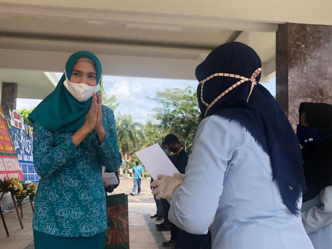 faktakalimantan.co.id – Palangka Raya – Sebagai rasa perhatian dan rasa syukur, Ketua TP PKK Provinsi Kalteng, Yulistra Ivo Sugianto Sabran mengumpulkan tenaga honor cleaning servis yang biasa bekerja di kantor Pemprov Kalteng untuk diberikan bantuan secara pribadi.