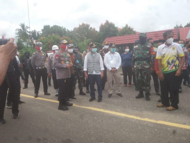 FOTO : Bupati Barito Timur, Ampera A.Y Mebas ketika dampingi Gubernur Kalimantan Tengah, H. Sugianto Sabran dan Kapolda Kalteng, Irjen Pol Dedi Prasetyo saat mengecek Posko Covid-19 di Polsek Benua Lima.