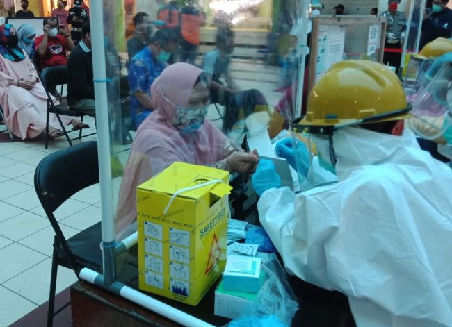 Faktakalimantan.co.id – SAMPIT – Tim Gugus Tugas Penanganan Covid-19 Kabupaten Kotawaringin Timur sudah melakukan pemeriksaan cepat atau rapid test kepada 146 pedagang di Pusat Perbelanjaan Mentaya (PPM) Sampit. Hasilnya, tiga orang pedagang reaktif.