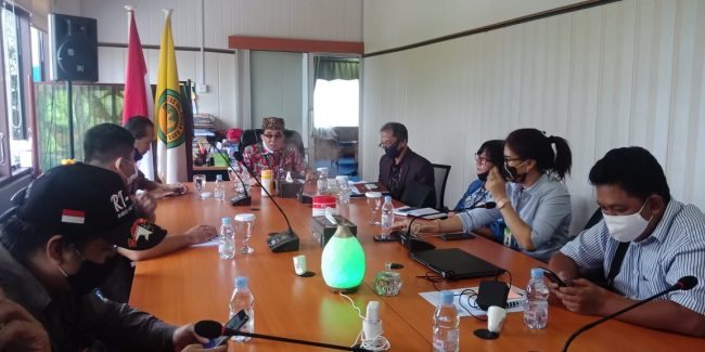 FOTO : Rektor UPR Dr Andrie Elia SE MSi, didampingi Wakil Rektor Bidang Akademik Prof Dr Ir Salampak MS, Kepala Biro Umum dan Keuangan Lusiana Vega SE MSi, serta Kepala Biro Akademik, Kemahasiswaan dan Perencanaan Iring SE MSi, Selasa (16/6/2020).