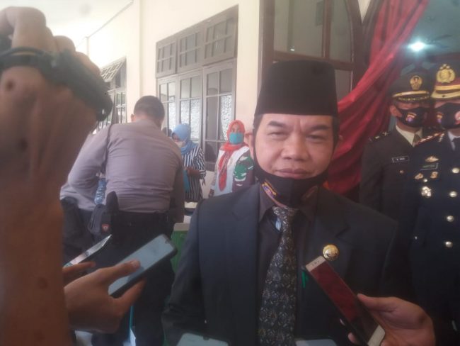 Keterangan : Bupati Barito Timur, Ampera A.Y Mebas saat menghadiri kegiatan HUT Bhayangkara ke- 74 di Polres Barito Timur, Rabu (1/7/2020).