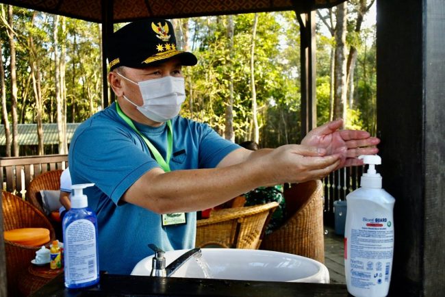 Hal ini kembali di tekankan oleh Gubernur Sugianto, di setiap usai kegiatan dengan rajin mencuci tangan, menggunakan masker, menjaga jarak hingga mengurangi kerumunan dalam aktifitas, demi terhindar dari covid-19.