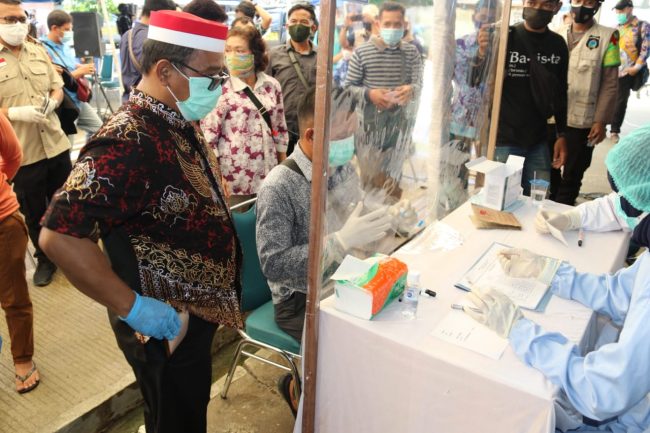 FOTO : Plt Gubernur Kalimantan Tengah, Habib Ismail saat meninjau langsung jalannya rapid test massal di Muara Teweh Kabupaten Barito Utara, Kamis (1/10/2020).