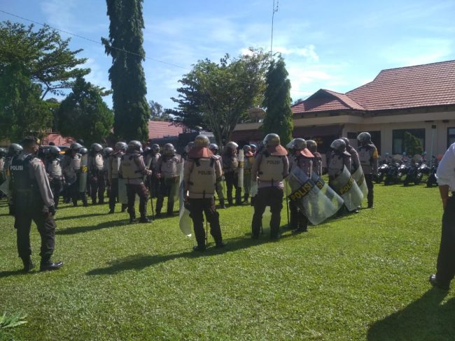 “Semua merupakan tanggungjawab kita selaku alat negara dalam menjaga keamanan dan ketertiban masyarakat. Dalam pengaman aksi unjuk rasa kita wajib berpedoman pada aturan yang berlaku dengan mengedepankan sikap persuasif, simpatik, humanis, tegas dan terukur,” ucap Kapolres, Selasa (13/10/2020).