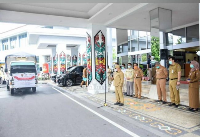 FOTO : Plt Gubernur Kalimantan Tengah, Habib Ismail Bin Yahya ketika launching Penyaluran Bantuan Sosial beras bagi Keluarga Penerima Manfaat (KPM) Program Keluarga Harapan di Kantor Gubernur setempat, Senin (19/10/2020).