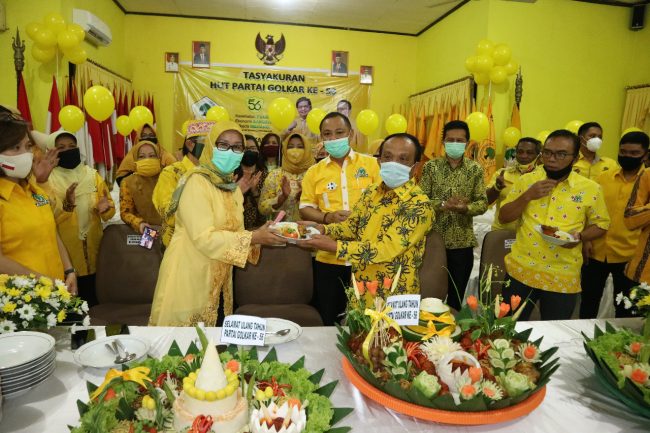 “Dalam peringatan HUT Partai Golkar ke 56 Tahun ini, juga dimaksudkan untuk mematangkan semangat dan soliditas, dari seluruh kader untuk memenangkan Paslon Gubernur dan Wakil Gubernur Sugianto-Edy, pada PILKADA tahun 2020, yang akan digelar pada tanggal 9 Desember mendatang,” Tegas Hj. Siti Nafsiah.