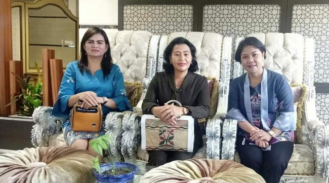 BERSAMA : Anggota DPRD Kabupaten Gumas Rayaniatie Djangkan (tengah) bersama koleganya Dewi Sari (ujung kiri), dan staf Setwan, ketika mengikuti suatu kegiatan.