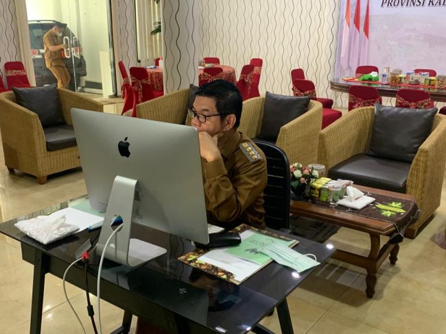 FOTO : Bupati Barito Timur, Ampera A.Y Mebas saat mengikuti kegiatan Musrenbang tingkat kecamatan melalui virtual, Senin (8/2/2021).