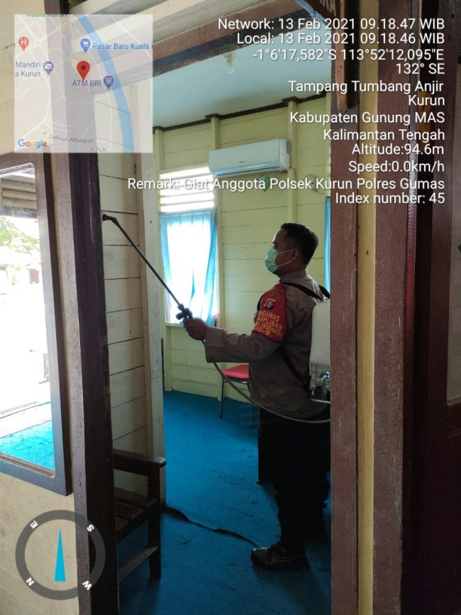 faktakalimantan.co.id – KUALA KURUN – Guna mencegah merebaknya virus Corona atau istilah lainnya Covid-19, Polsek Kurun, Polres Gunung Mas (Gumas) jajaran Polda Kalteng, melakukan pembersihan Mako dan penyemprotan cairan Desinfektan di Kantor Polsek Kurun, Kab. Gumas, Kalteng, Sabtu (13/2/2021) pagi.