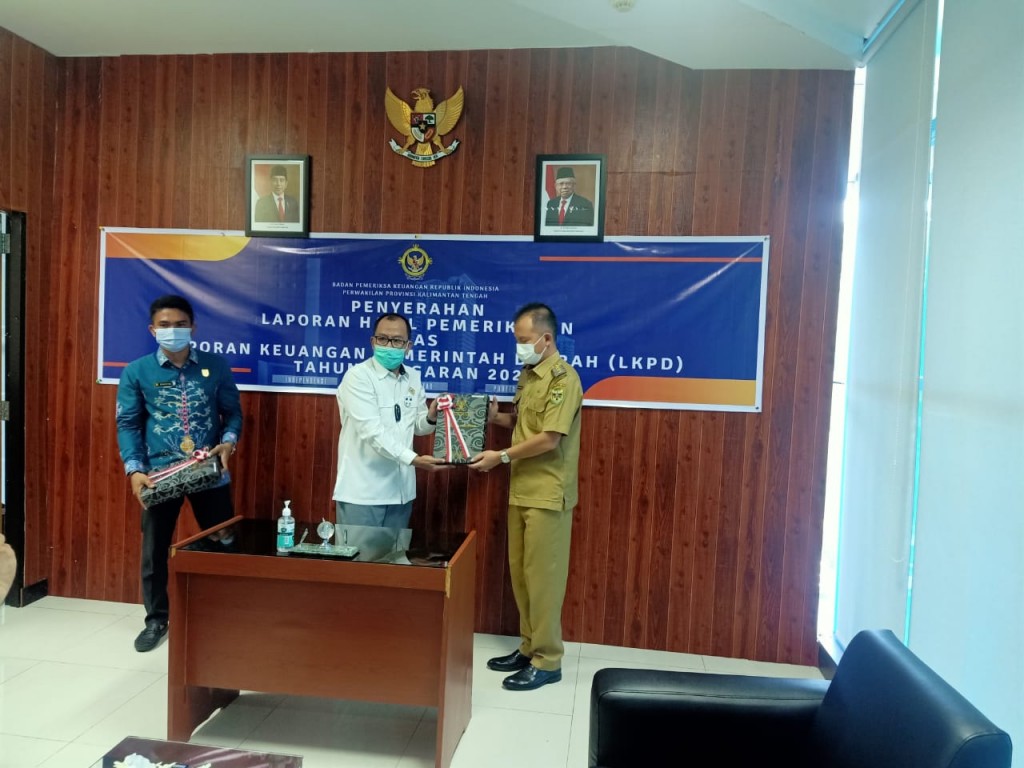 Penyerahan WTP ini diserahkan Kepala BPK Perwakilan Kalimantan Tengah, Ade Iwan Ruswana kepada Bupati Gunung Mas, Jaya Samaya Monong di kantor BPK Perwakilan Kalteng, Senin (10/5/2021).