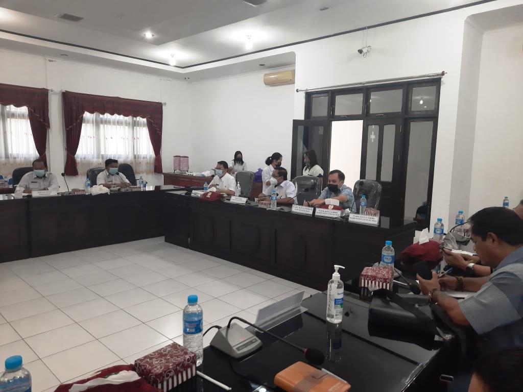 RDP : Ketua DPRD Kabupaten Gumas Akerman Sahidar didampingi Wakil Ketua Komisi II DPRD Evandi dan Asisten II Richard saat memimpin RDP, di ruang rapat komisi DPRD setempat, Rabu (2/6/2021).