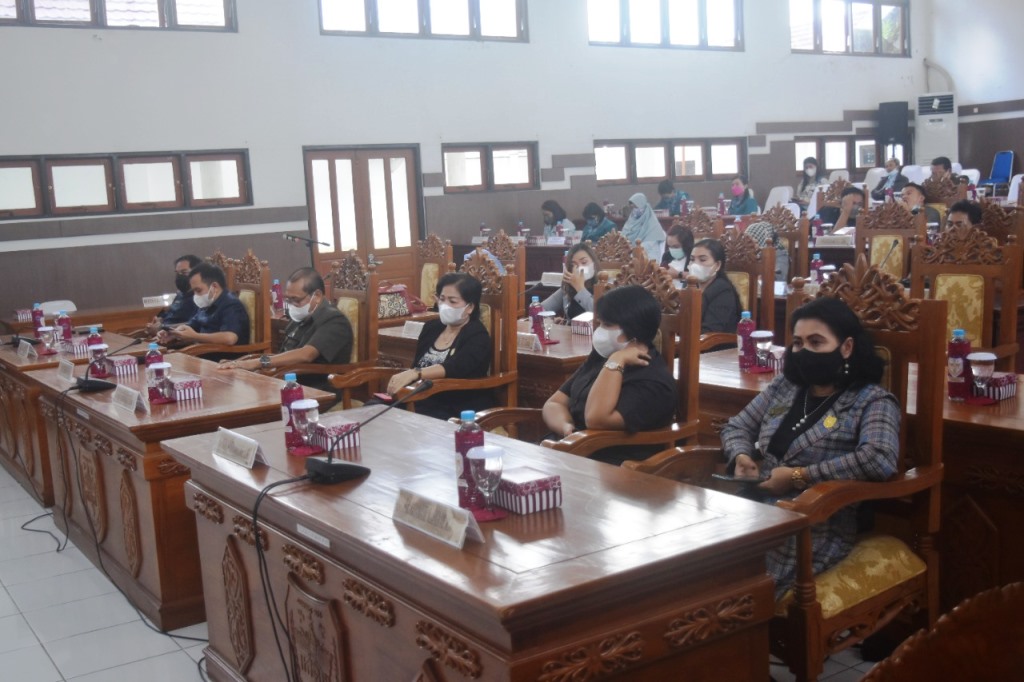 HADIRI : Anggota DPRD Kabupaten Gumas Rayaniatie Djangkan (ujung kanan) bersama koleganya ketika menghadiri rapat paripurna DPRD setempat.