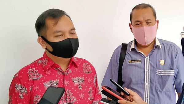 FOTO : Anggota DPRD Gumas, Evandi Juang bersama Punding S. Merang saat dibincangi awak media di kantor dewan setempat.
