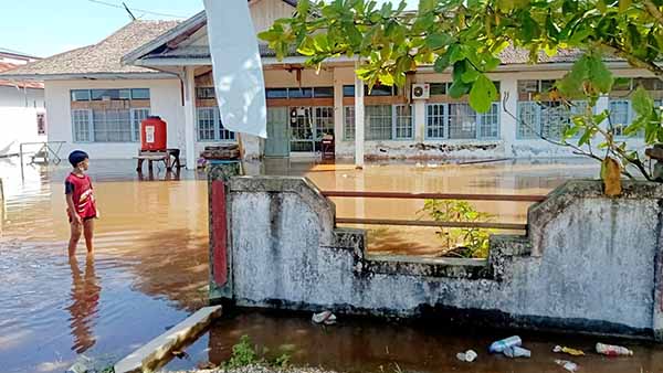 FOTO : Tampak Kantor Polsek Sepang saat ini terendam air dikala musim penghujan, Senin (6/9/2021).