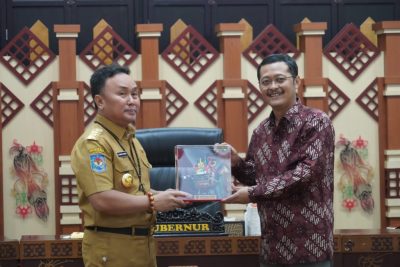 FOTO : Ketua KPPU RI,  M. Afif Hasbullah (kanan) saat diberikan cindramata oleh Gubernur Kalimantan Tengah, H. Sugainto Sabran (kiri).