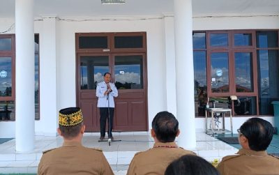 Foto: Ketua KPU Gunung Mas Stepenson saat memberikan sambutan di kegiatan hibah dari pemda kepada pihaknya