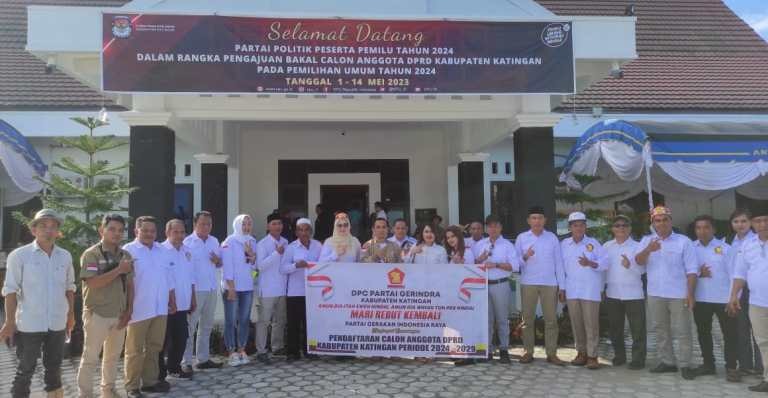 KASONGAN –  Partai Gerakan Indonesia Raya (Gerindra) Kabupaten Katingan mendaftarkan  Bakal Calon Legislatif (Bacaleg) ke Komisi Pemilihan Umum (K