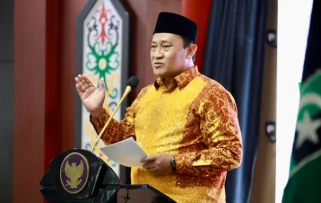 Faktakalimantan.co.id – Wakil Gubernur Kalimantan Tengah (Kalteng) H. Edy Pratowo menyampaikan apresiasi setinggi-tingginya kepada Himpunan Mahasiswa Islam (HMI) Kalteng yang terus menunjukkan eksistensinya sebagai organisasi mahasiswa Islam yang memiliki visi besar untuk membangun umat dan bangsa. Hal ini disampaikan Wagub H. Edy Pratowo saat membacakan sambutan tertulis Gubernur Kalteng usai bertindak sebagai Saksi Pelantikan Pengurus Badan Koordinasi Himpunan Mahasiswa Islam Kalimantan Tengah Periode 2024-2026, bertempat di Aula Jayang Tingang (AJT), Kantor Gubernur Kalteng, Minggu (09/03/2025).